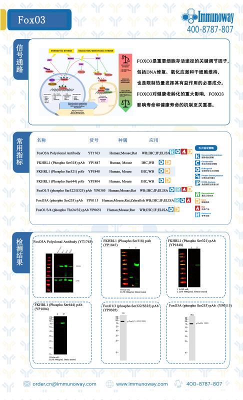 FOXO3是重要細(xì)胞存活途徑的關(guān)鍵調(diào)節(jié)因子包括DNA修復(fù)、氧化應(yīng)激和干細(xì)胞維持也是限制熱量發(fā)揮其有益作用的必要成分6E04FOXO3對健康老齡化的重大影響,F(xiàn)OXO影響壽命和健康壽命的機(jī)制至關(guān)重要。